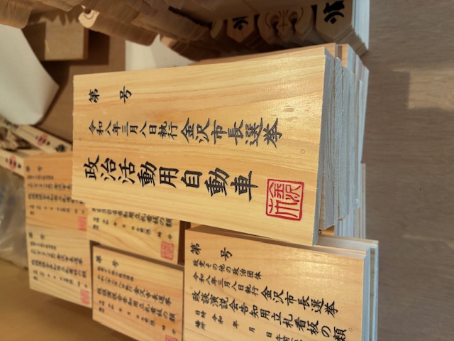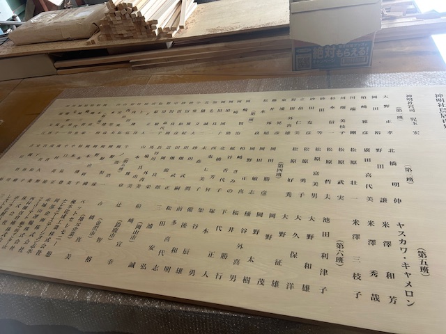 - 能登半島地震で被災されたお寺の復興のため、寄付をいただいた方々のお名前を記しております。大きさが畳一畳分の大きな看板になります。